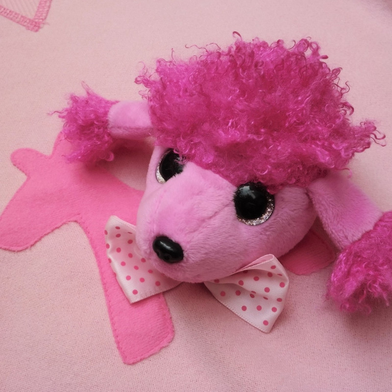 造形可愛貴婦狗前胸貼布讓我們特設的貴婦狗玩偶可隨意牢固地貼上。