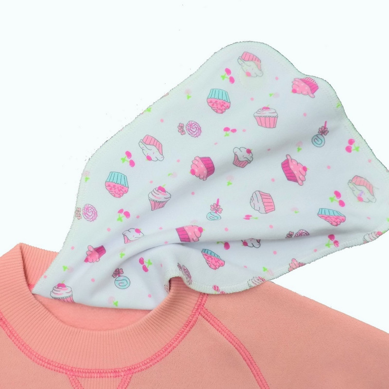 衣背备有享外观设计专利权的轻揭式印花全棉自由背巾 〝 明 之 翼 〞,提供保持90-120码的孩子们背部温暖和干爽的选择。